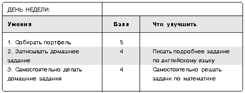 Данную таблицу ученик заполняет ежедневно в